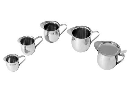 Stainless Steel Bell Creamers with High mirror polish. Available with and without cover.